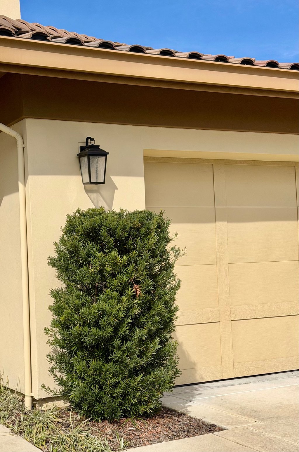 Remove shrubs located directly under eaves. When shrubs ignite, they can send flames and intense radiant heat along the underside of the eaves. Eliminating shrubs below the eaves removes this direct flame pathway.